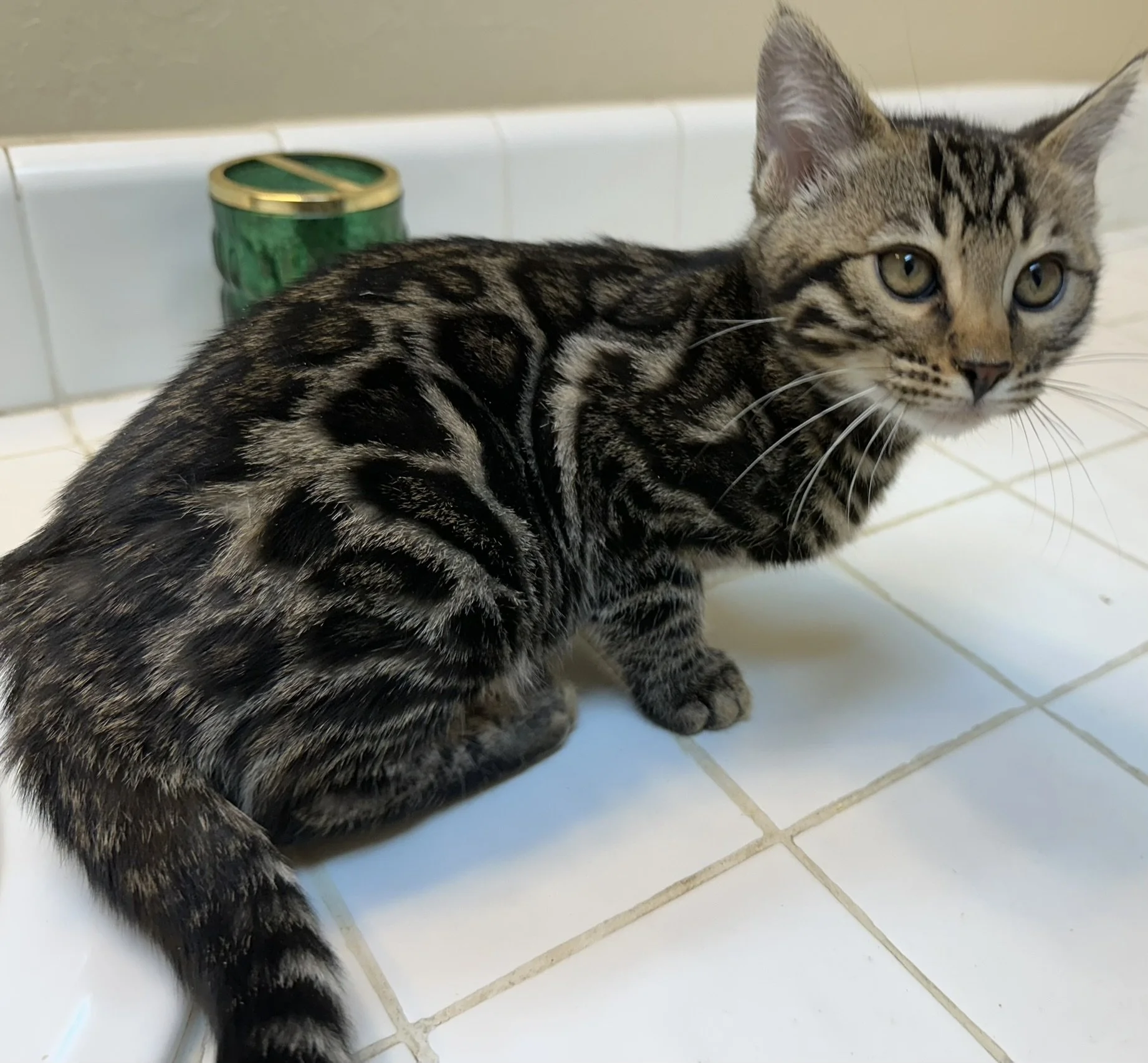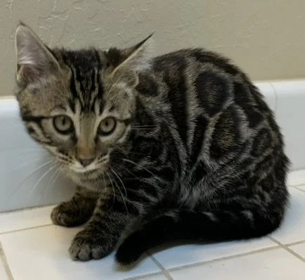 Hermia Only slightly more reserved than her sister, Hermia likes to think before she leaps. Look at those rosettes! Nice contrast and light in the center. She is a beauty!Current on vaccinations. Not yet spayed. DOB: October 19, 2025 More Kittens!